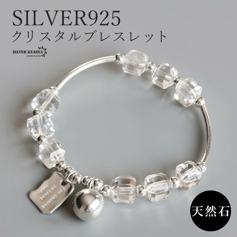 \スーパーSALE 10%OFF 9,900円→8,910円 /天然石 クリスタルブレスレット シルバー925 水晶 キューブ プレート ストーンブレスレット レディース 女性 腕輪 金属アレルギー対応