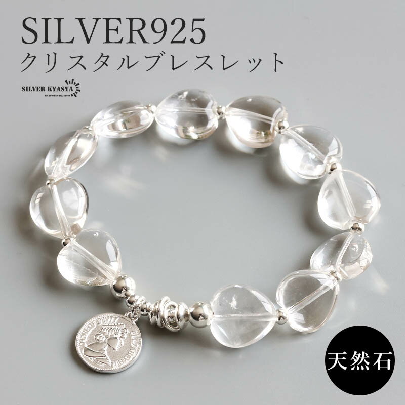 \スーパーSALE 10%OFF 8,800円→7,920円 /天然石 ハート形 クリスタルブレスレット コイン シルバー925 水晶 ストーンブレスレット レディース 女性 腕輪 金属アレルギー対応