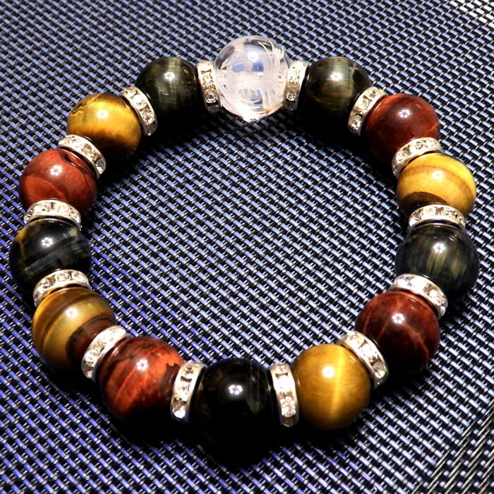 \11/15迄!!3000円以上で5%OFF/龍(水晶)と3色の虎目石 ダンディなブレスレット[ ブレスレット 太め 存在感 レディース メンズ 男性 女性 天然石 男女兼用 開運 お守り 魔除け 財運 幸運 イエロー ブルー レッド 邪気払い パワーストーン 日本製 国産 送料無料 ]