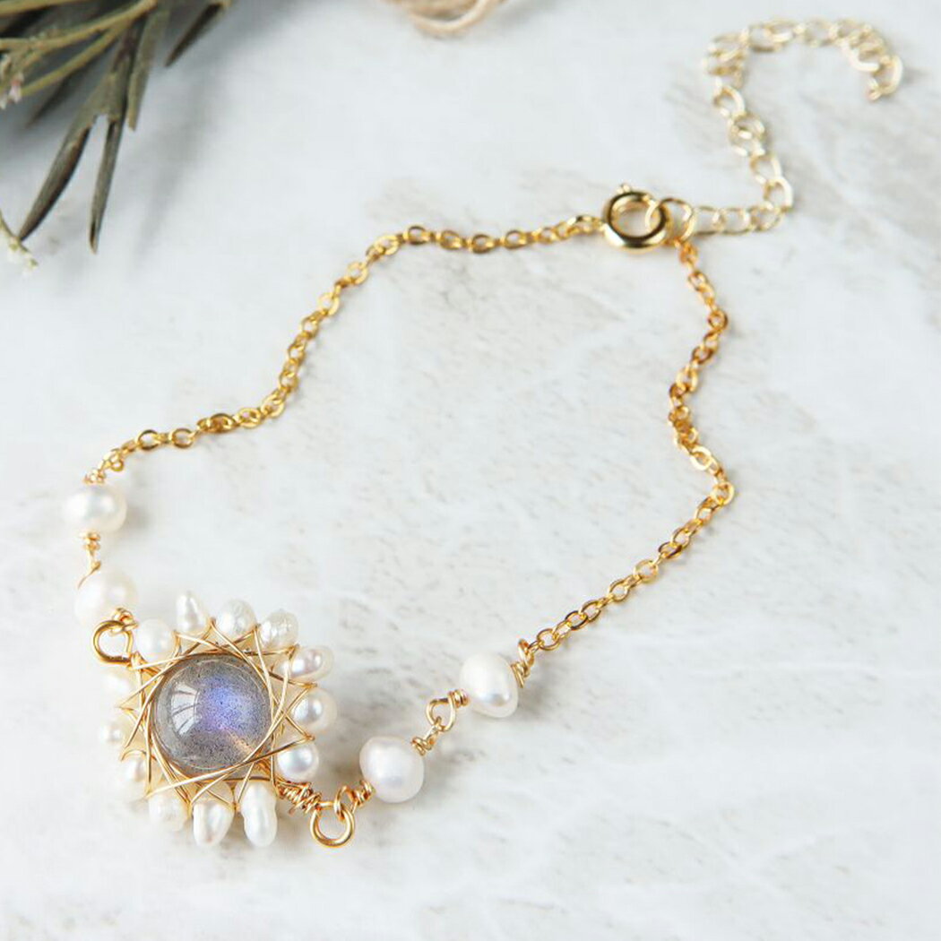 天然石 ブレスレット ラブラドライト 淡水パール チェーンブレスレット レディース ゴールド