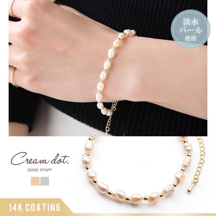 CREAM-DOT ブレスレット 14kコーティング レディース 淡水パール メタルボール 大人 上品 エレガント きれいめ 華奢 シンプル フェミニン ゴールド シルバー アクセサリー
