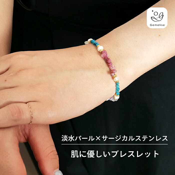 【店内全品15%オフクーポン】 【送料無料】Gemelise ジェメリース 淡水パール×天然石 ブレスレット レディース サージカルステンレス 金属アレルギー配慮 上品 華奢 高見え価格 カラフル 重ね付け カジュアル ギフト 750309