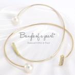 バングル ブレスレット C型 10金 k10イエローゴールド ダイヤモンド 0.05ct 淡水パール 華奢 レディース アクセサリー