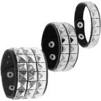 レザー ブレスレット メンズ レディース ペア 革 ピラミッドスタッズ リストバンド ゴスロリ 地雷系 ロック(2連, フリーサイズ)
