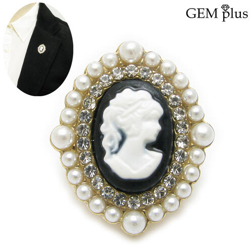 ブローチ ラペルピン レディース メンズ パール カメオ風 ラインストーン タックピン ピンブローチ 結婚式 JS10067