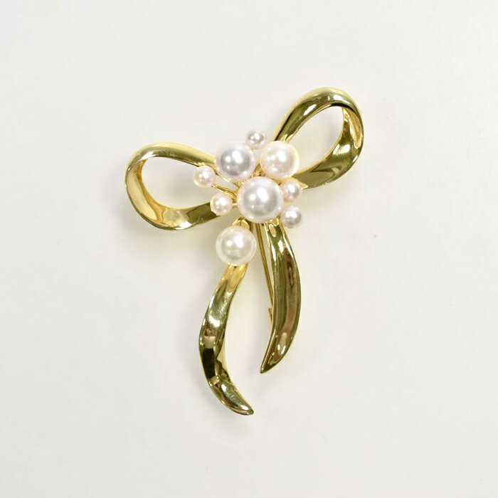 【50%OFF】SV アコヤ真珠 リボンモチーフ ブローチ P 約3.0-7.5mm