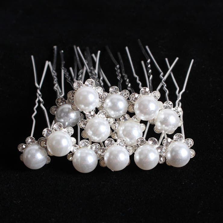 レースレディース 【20本セット】 パール × ビジュー フラワー ドレス Uピン 女性 レディース ヘアアクセサリー 花 髪飾り ビーズ イミテーション 真珠 キラキラ 花 フラワー 結婚式 パーティー 成人式 着物 ドレス 洋装 和装 前撮り 上品