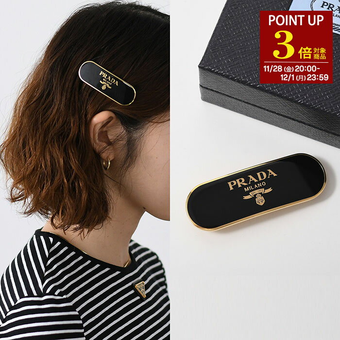 【P3倍対象商品】PRADA プラダ アクセサリー ヘアアクセサリー メタルヘアクリップ 1IF022 2BA6 レディース ブラック ゴールド 真鍮 バレッタ メタルロゴ ヘアクリップ オケージョン