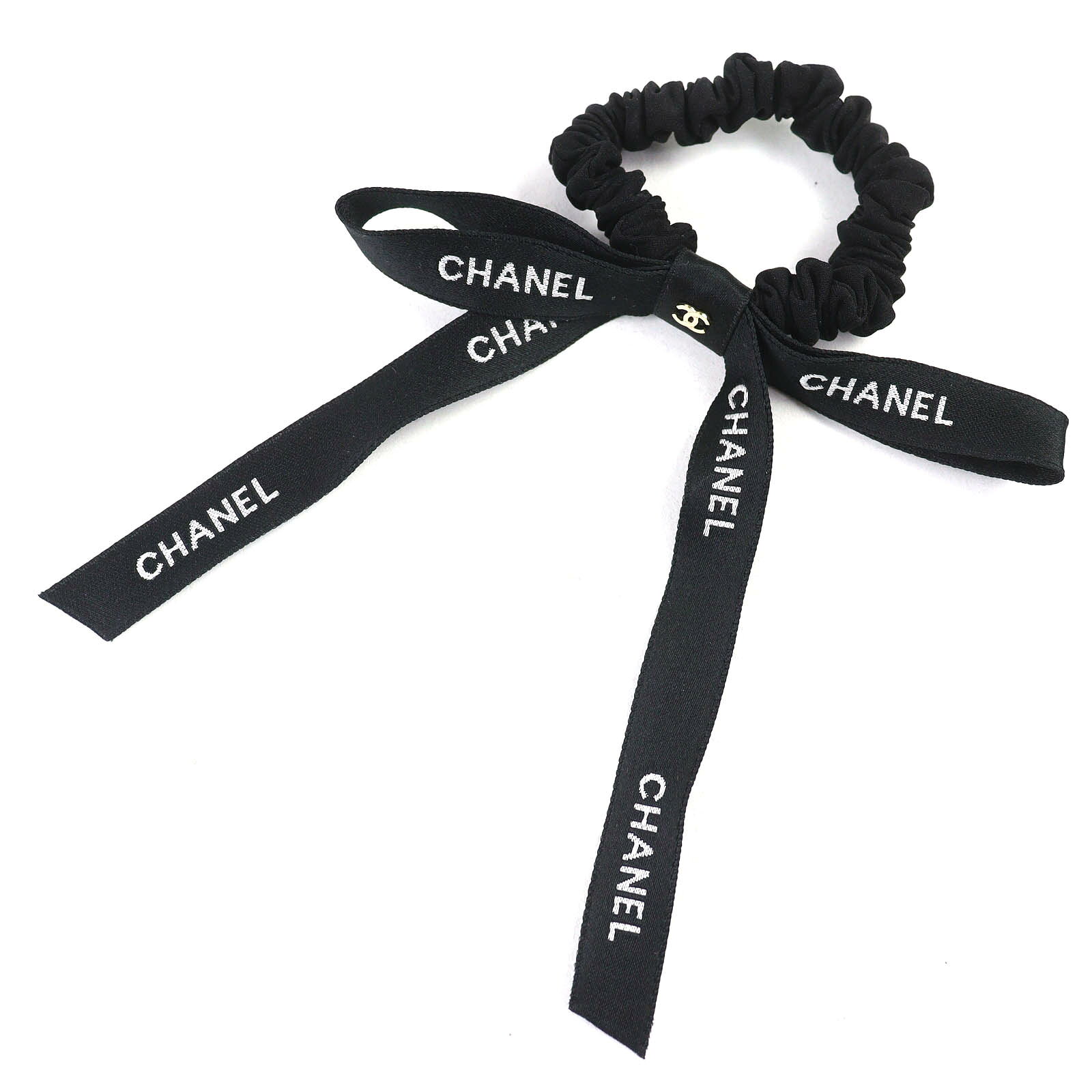 未使用 CHANEL シャネル ヘアアクセサリー 23P リボン ココマーク シュシュ ブラック レディース【中古】