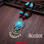 ペンダント ネックレス レディース アクセサリー ファッション小物 チベット民族風 ストーン ウッドネックレス エスニック 数珠 木製ビーズ ターコイズ おしゃれ