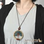 ネックレス レディース 天然素材 大ぶり ラウンド型 ターコイズカラー ウッド ロングネックレス 合皮 ペンダント ロング ネックレスロング ロング ゴールド シルバー ブラウン ターコイズブルー アクセサリー ハンドメイド