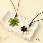 メール便送料無料 ネックレス ペンダント レディース ウッド 花 フラワー 白 黒 緑 バイカラー 天然素材 カジュアル N