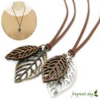 ネックレス レディース リーフ 葉っぱ アンティークゴールド レザーネックレス ウッド ロングネックレス ペンダント CHN10054