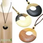 ネックレス レディース 天然素材 水牛の角 ウッド コンビ レザーネックレス サークル アクリル プレート ナチュラル ペンダント KN55002