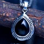 天然石 オニキス装飾 縁取り銀の玉飾りドロップデザイン メンズ&レディース インディアンジュエリー シルバー925 ペンダント ネックレス