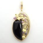 K18 ゴールド 黒 オニキス サファイア 0.60ct ダイヤモンド 0.11ct ペンダントトップ 中古 美品 レディース 質屋