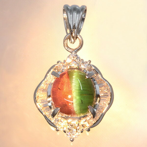◆スーパーセール限定・今だけ20%OFF!192500円⇒154000円に!◆バイカラー トルマリンキャッツアイ ペンダントトップ 3.890カラット プラチナ900 PT900 豪華取り巻き 鑑別書付 /緑(グリーン)/セレクションジュエリー・新品/届10/ラックジュエル luckjewel/1点もの