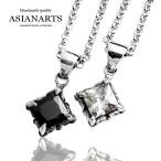 ネックレス シルバー925 メンズ レディース ペンダント チェーン付 スクエア ジルコニア シンプル