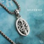 ネックレス シルバー925 メンズ レディース ペンダント チェーン付 百合の紋章 フルールドリス ユリ フレア リリィ オーバル プレート ジルコニア シンプル