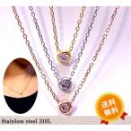 1粒ネックレス ステンレス レディース ピンクゴールド イエローゴールド シルバー ノンアレルギー
