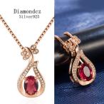 ネックレス レディース ペンダント シルバー925 水滴しずく 紅色キュービックジルコニア トンボ形 送料無料 アレルギー