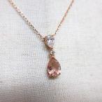 ネックレス ペンダント スワロフスキー ドロップ&ラウンド カラー3色 ローズ アクアマリン クリア 小さめ 小粒 小ぶり チェーン2重 かっこいい 可愛い シンプル オフィスで使える アクセサリー レディース プレゼント ギフト