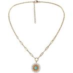 【並行輸入品】UniLogue チタンスチールゴールドリンクチェーンネックレス 太陽とターコイズペンダント レディースネックレス ジュエリーギフト レ