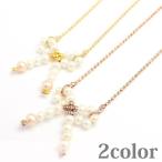 ★2点30%OFFクーポン対象★ネックレス レディース ショート チェーン 2連 パール ビーズ 小粒 ミックスカラー ステーションペタルチェーン レイヤード風 大人 華奢 ゴールド シルバー outlet