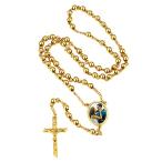 【並行輸入品】FindChic ステンレススチール ロザリオ ビーズネックレス カトリック 十字架ペンダント レディース レッド/ブルー クリス