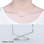 ネックレス レディース 一粒ダイヤ シンプルライン 2連 スティックバー プラチナ仕上げ シルバー925 人気 誕生日 お返し プレゼント