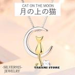 ネックレス レディース 猫ペンダント 月の上の猫 可愛い プラチナ仕上げ シルバー925 女性 嫁 妻 彼女 誕生日プレゼント
