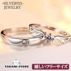 指輪 レディース 一粒ダイヤ 天使の羽 ペアリング フリーサイズ シルバー925 プラチナ仕上げ C型リング クリスマス 誕生日プレゼント
