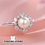 指輪 レディース パール フリーサイズ 天然貝パール ダイヤ指輪 豪華 シルバー925 プラチナ仕上げ ギフト クリスマス プレゼント