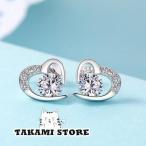 ピアス レディース ハート ダイヤ 豪華10粒 オープンハート 2色展開 ホワイト パープル プラチナ仕上げ シルバー925 プレゼント