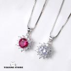 ネックレス レディース ガーネット お花 贅沢13粒 CZダイヤ S925シルバー プラチナ仕上げ プレゼント 女性 ホワイトデー ギフト