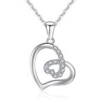 ダブルハートネックレス レディース ペンダント シルバー925 ジルコニア プラチナメッキ 金属アレルギー対応 あずきチェーン 誕生日 プレ