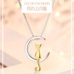 ネックレス レディース 月の上の猫 猫ペンダント シルバー925 プラチナ仕上げ 女性 人気 彼女 嫁 娘 誕生日 プレゼント ジュエリー 記念日
