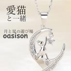 ネックレス レディース 猫ペンダント 遊び猫 星月 可愛い プラチナ仕上げ シルバー925 女性 娘 誕生日 母の日