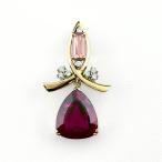 トルマリン ペンダントトップ YG イエローゴールド プラチナ メレダイヤ ペンダントトップ K18 Pt850 トルマリン レディース 中古