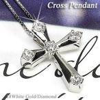ネックレス レディース クロスペンダント ダイヤ k18ホワイトゴールド 天然ダイヤモンド 十字架 オータムセール 2025