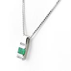 エメラルド デザインネックレス ホワイトゴールド プラチナ メレダイヤ ペンダント ネックレス K18 WG Pt900 レディース 中古