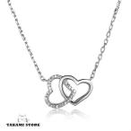 ネックレス レディース ダブルハート ダイヤ オープンハート ホワイト ゴールド プラチナ仕上げ シルバー925 彼女 妻 プレゼント