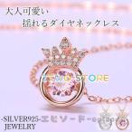 ネックレス レディース/揺れるダイヤ クイーンクラウン 王冠/ピンクゴールド プラチナ仕上げ シルバー925/ 女性 誕生日プレゼント 記念日