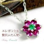 ルビー エメラルド クリスマスリース フラワー ネックレス レディース ペンダント K10ホワイトゴールド K10WG 7月誕生石 5月誕生石 天然石
