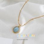 ネックレス レディース ブルー石 しずく プレート ボールチェーン ゴールド 316L アレルギー対応 おしゃれ 18KGP プレゼント