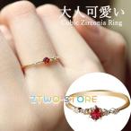 指輪 リング レディース 一粒 赤石 オシャレ 華奢 重ね付け ピンクゴールド CZダイヤ 激安アクセサリー