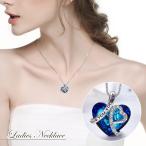 レディース ロング ネックレス クリスタル カラフル 青 水晶 ペンダント 大人 おしゃれ ローズゴールド ラインストーン 宝石 装飾 大人