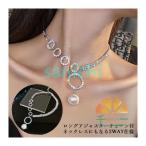 チョーカー ネックレス ペンダント レディース アクセサリー アシンメトリー 大粒フェイクパール ラインストーン チェーン リング ビジュー アジャス
