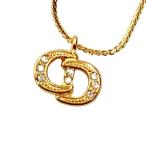 クリスチャンディオール Christian Dior CDロゴ ネックレス ラインストーン ペンダント アクセサリー ゴールドカラー ■GY47 レディース