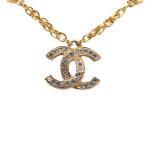 シャネル CHANEL ココマーク ラインストーン ネックレス CCマーク ペンダント ネックレス GP ゴールド レディース 中古